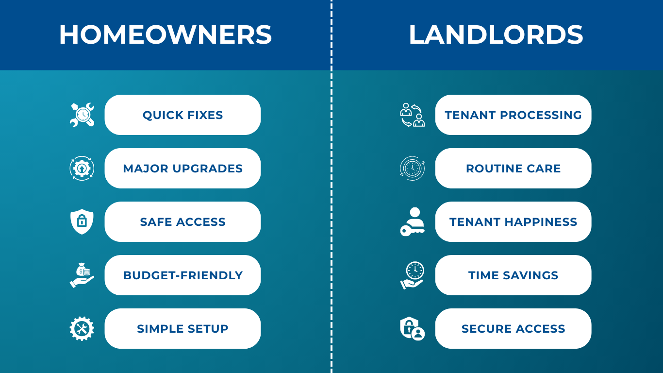 - For Homeowners & Landlords: Tailored support for repairs, upgrades, or multi-property needs.